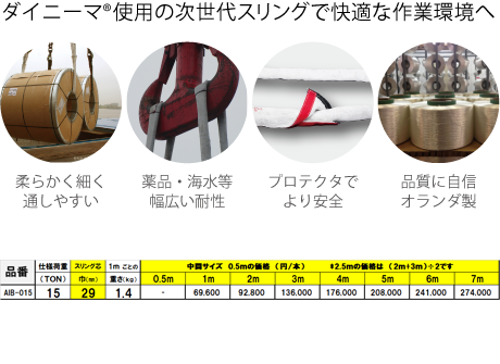 同荷重のスリングよりも圧倒的に軽量で、無理なく扱えます。